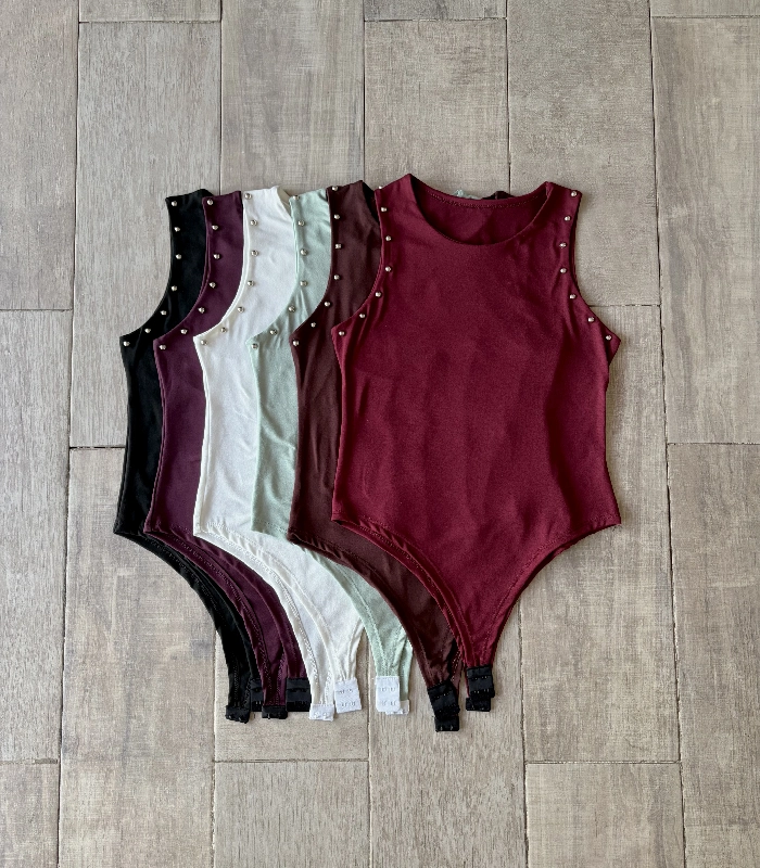 Body musculosa cuello redondo doble tela, con tachas.